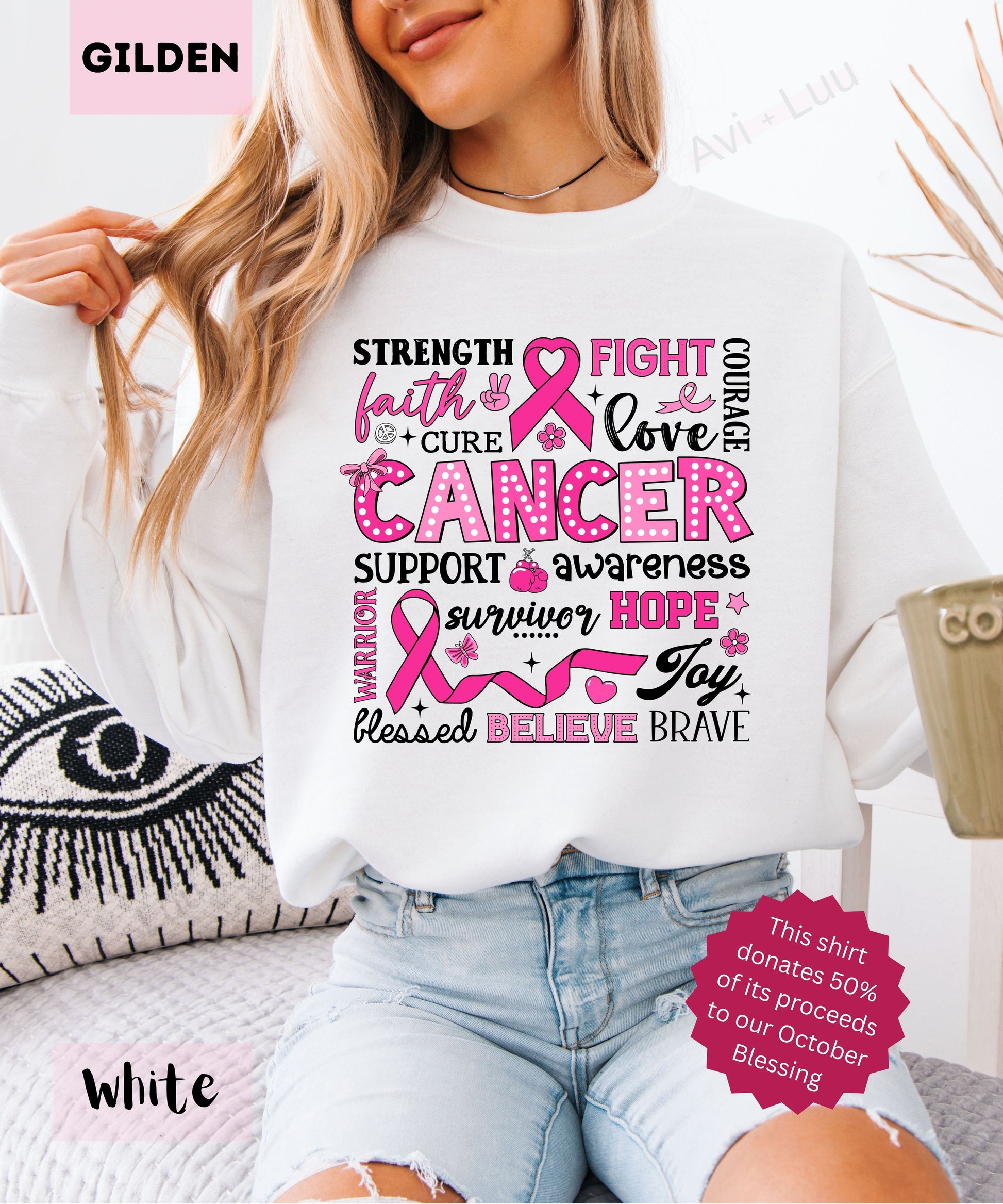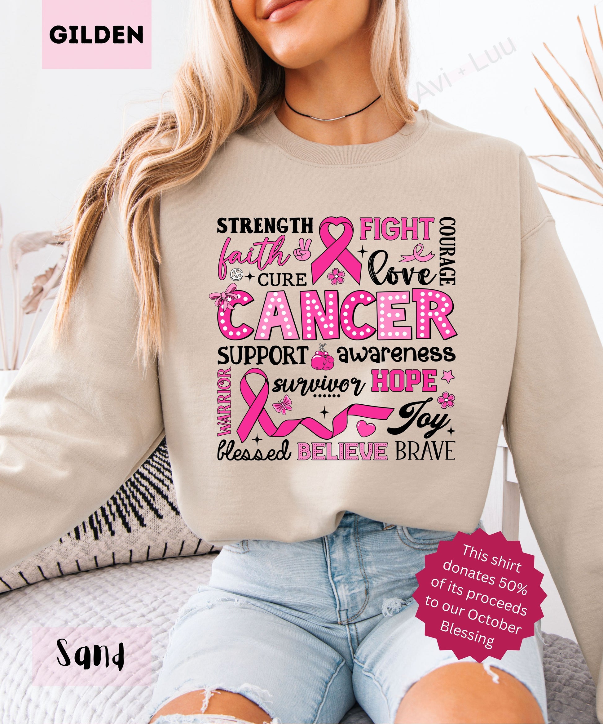 Collage Pink Ribbon | Gilden Unisex Sweatshirt